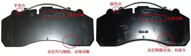 刹车片外观对比(左侧原厂,右侧非原厂)
