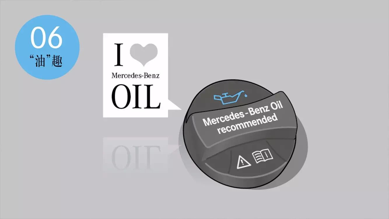 如果一辆梅赛德斯-奔驰会说话,那它一定是酷爱表白的那款!在未来的每一辆梅赛德斯-奔驰上,加机油的盖子上都会印有“Mercedes-Benz Oil recommended(最爱原厂机油)”字样。没错,最好的油配最爱的车,因为I Love “油”,所以I Love You!