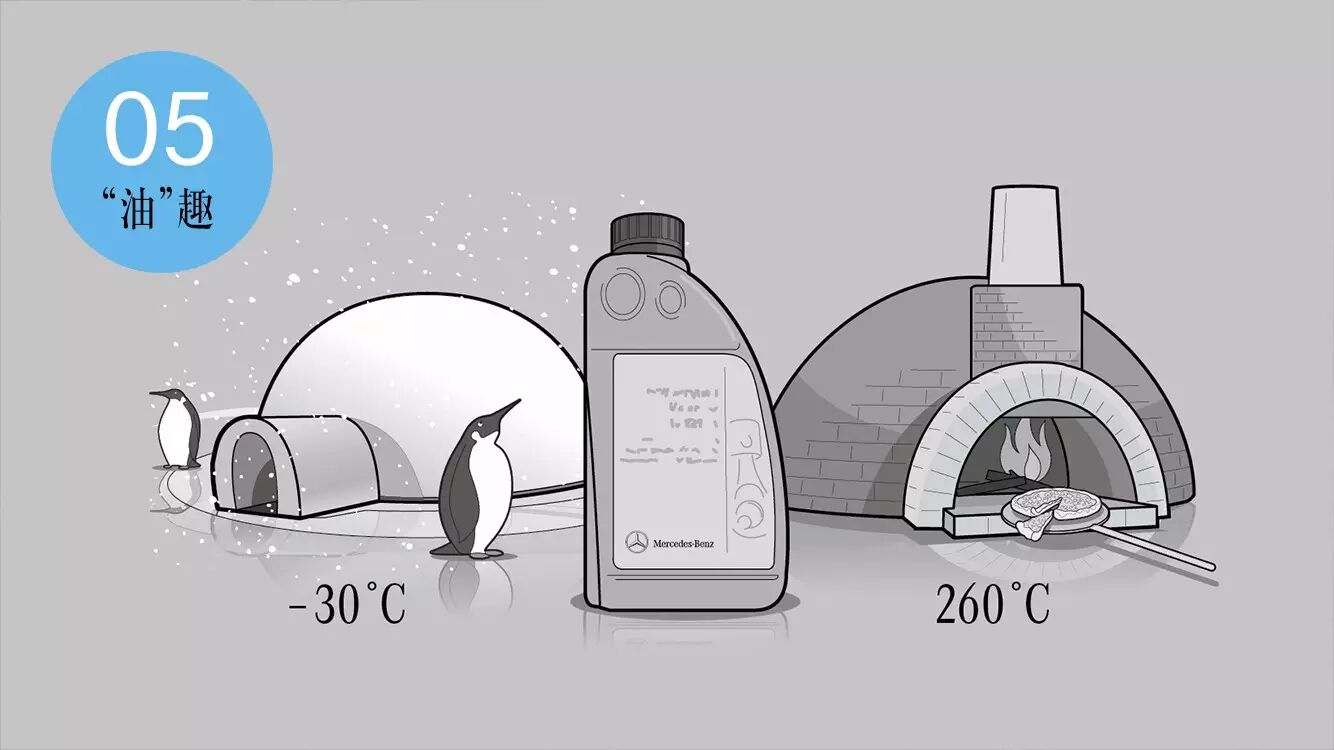 无论你是在永远低温启动的格陵兰岛,还是在炎炎烈日下踩足油门,奔驰原厂发动机油都表示毫无压力!零下30摄氏度?260摄氏度?奔驰原厂发动机油的“冷血动物”适应模式,让爱车无往不利。