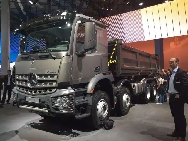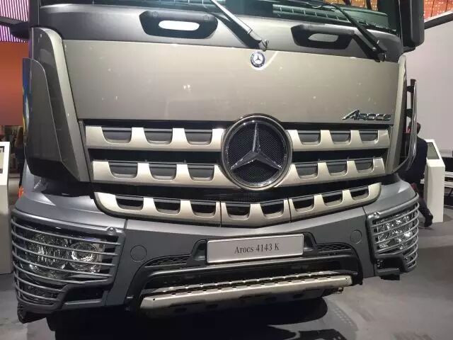 在德国汉诺威商用车展上,梅赛德斯-奔驰Arocs静静伫立在展台中央。刚毅硬朗的线条,灰银为主的经典配色,有着百年传统的德式精工血脉,让Arocs引得众人纷纷驻足,欣赏这份阳刚之美