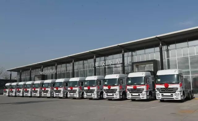 奔驰卡车中国 今天,梅赛德斯-奔驰卡车与北京中谊快运有限公司新车交付仪式在银汉华星奔驰卡车经销商店举行。活动现场,12辆白色Actros 2644 6×2重型牵引车一字排开,在阳光下熠…